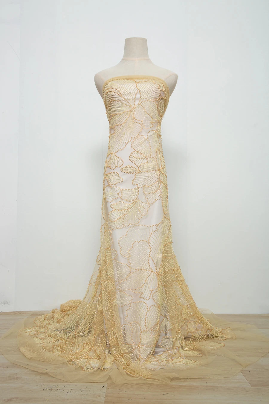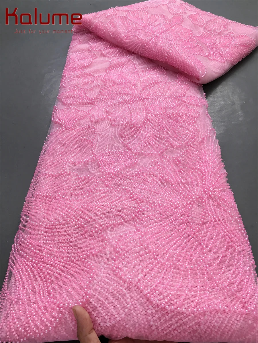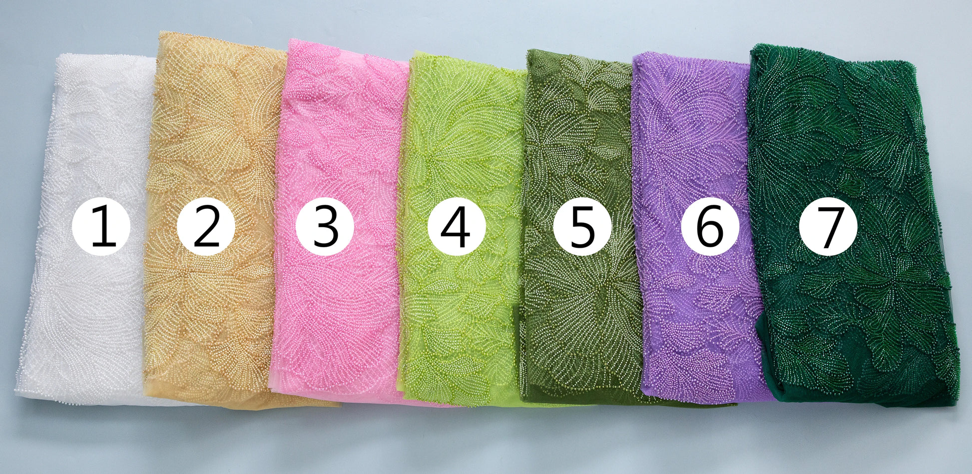 Kalume Green French Mesh Lace Fabric Beads African Lace Fabrics Nigerian Mesh Lace Fabric For Diy Dresses Party Wedding F4034