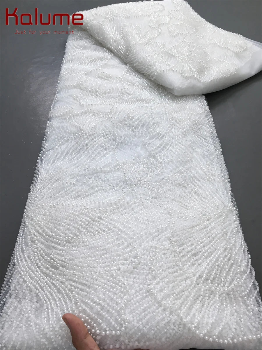 Kalume Green French Mesh Lace Fabric Beads African Lace Fabrics Nigerian Mesh Lace Fabric For Diy Dresses Party Wedding F4034