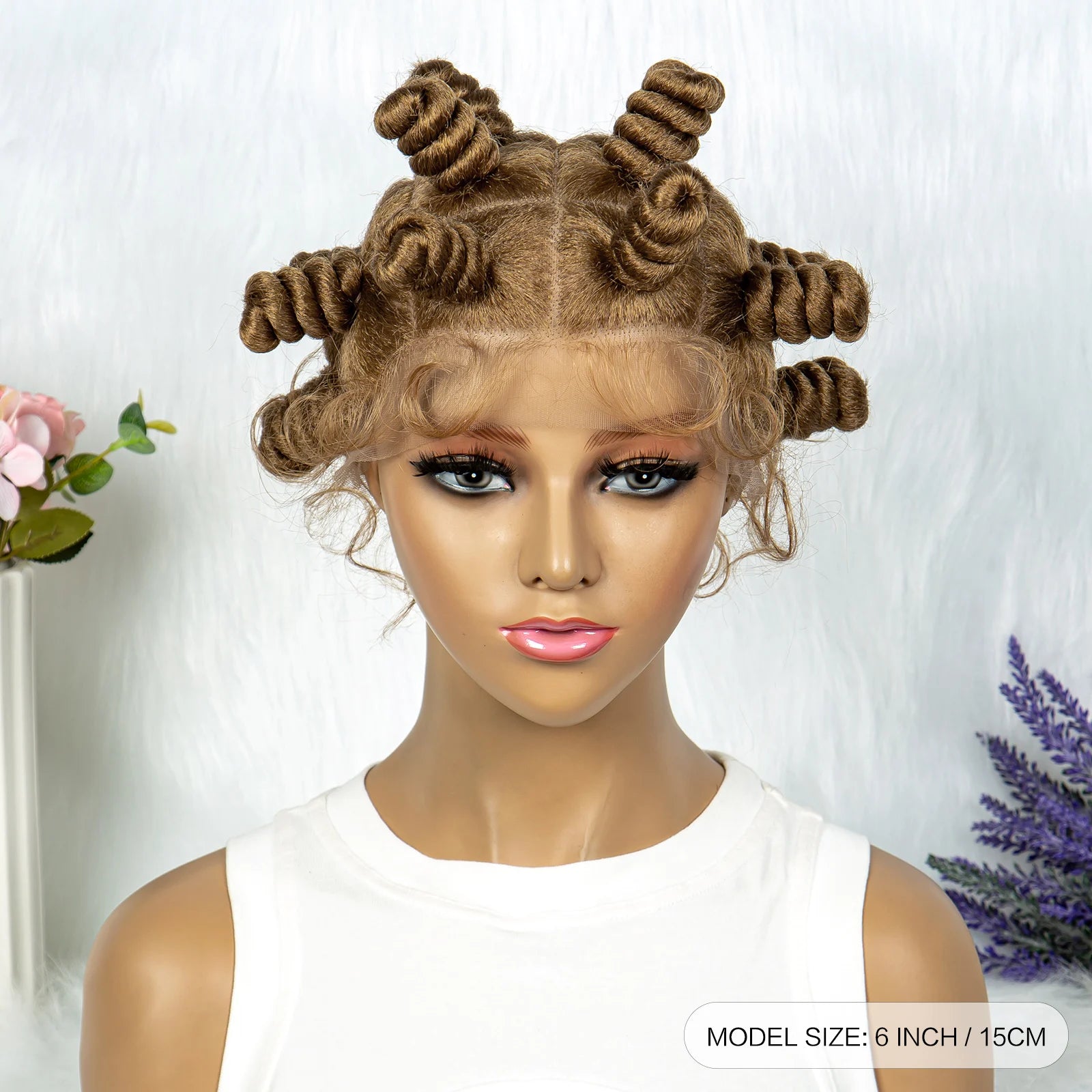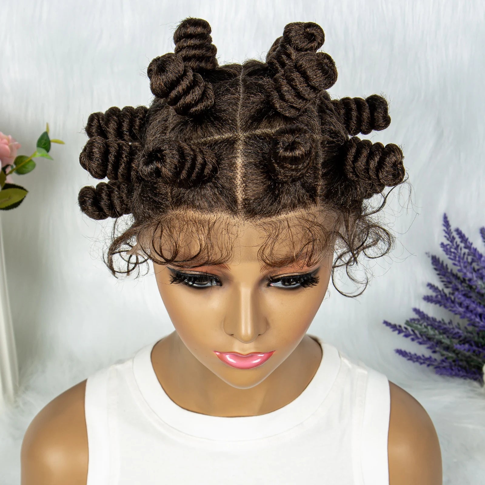 Knotless Braids Wig Synthetic Box Braided Hair Twist Braided Buns Wig Full Lace African Braiding Hair For Black Women
