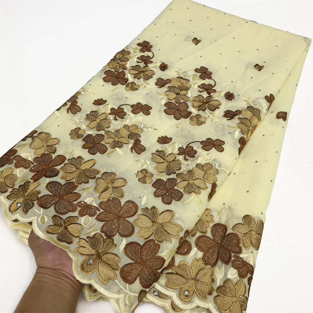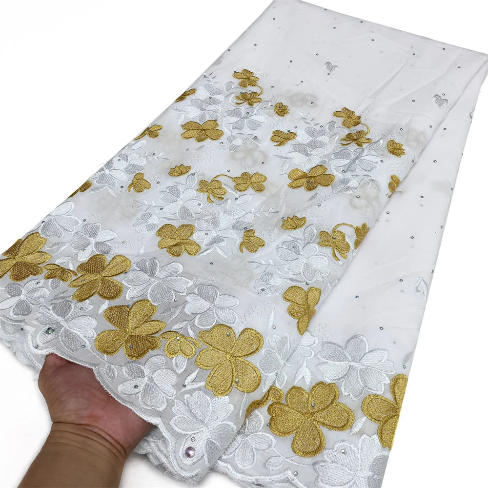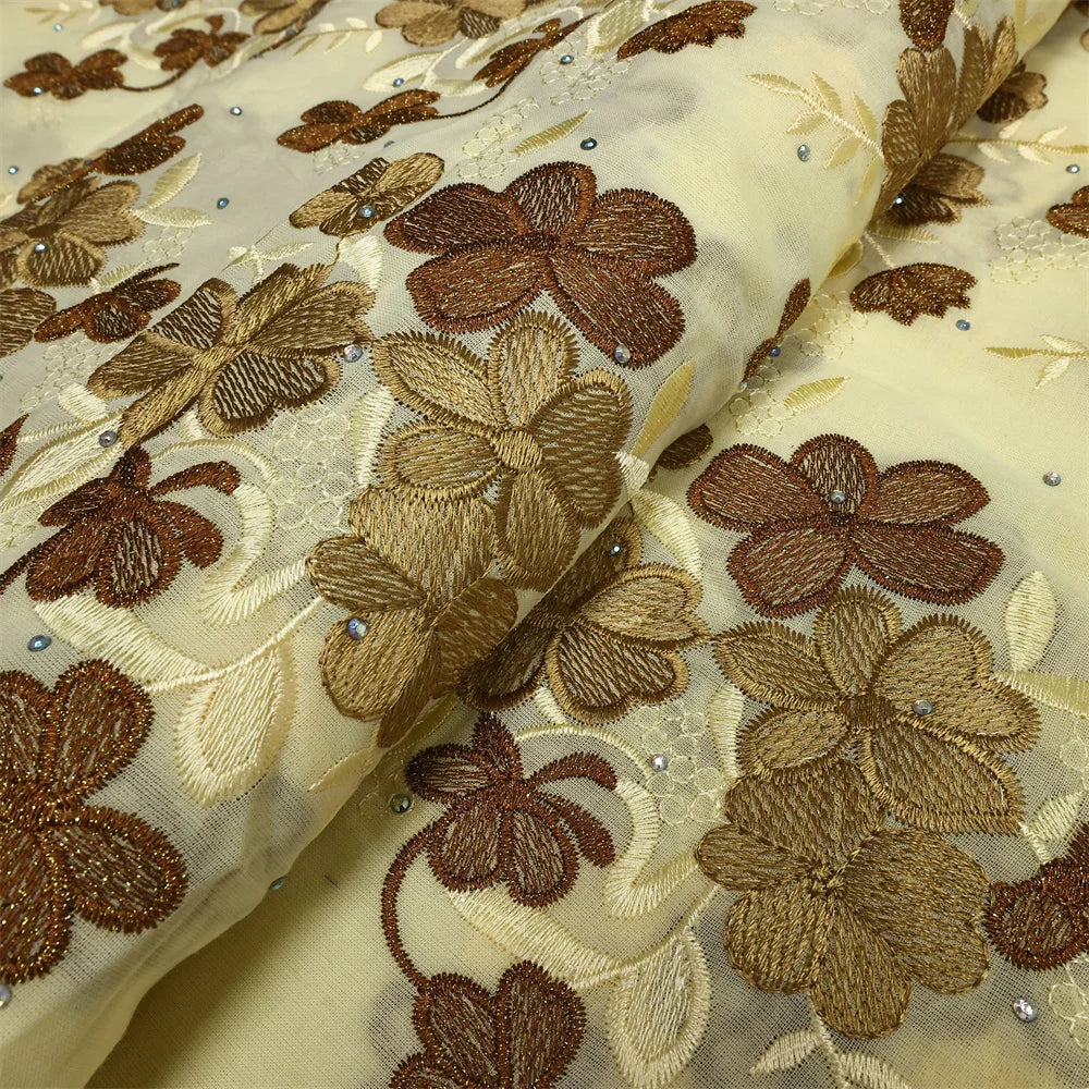 Latest 2025 High Quality African Nigerian Tulle Lace Fabric Cotton Damask Guipure Formal Prom Party Gown Dress 5Yards