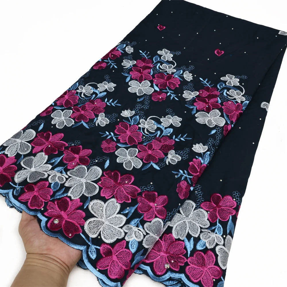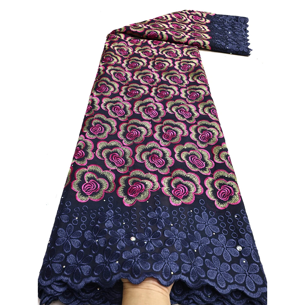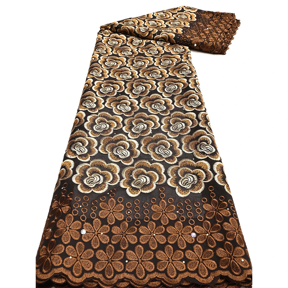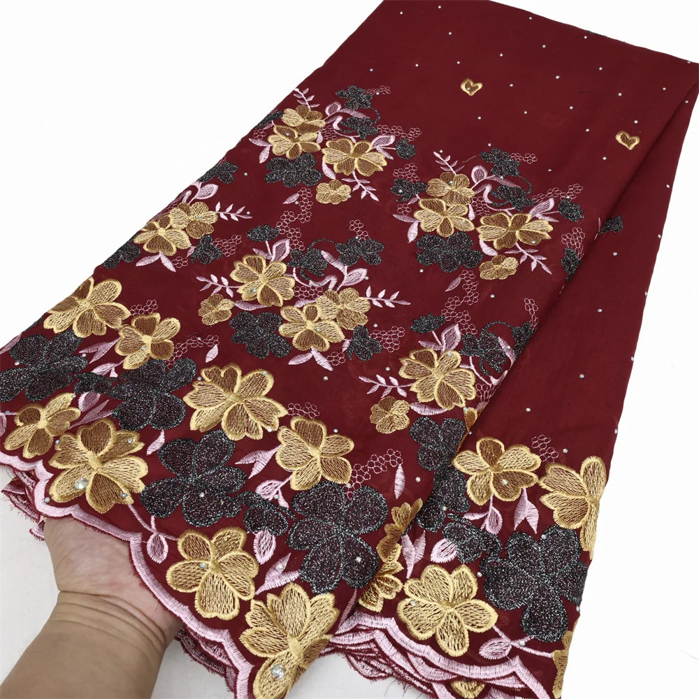 Latest 2025 High Quality African Nigerian Tulle Lace Fabric Cotton Damask Guipure Formal Prom Party Gown Dress 5Yards