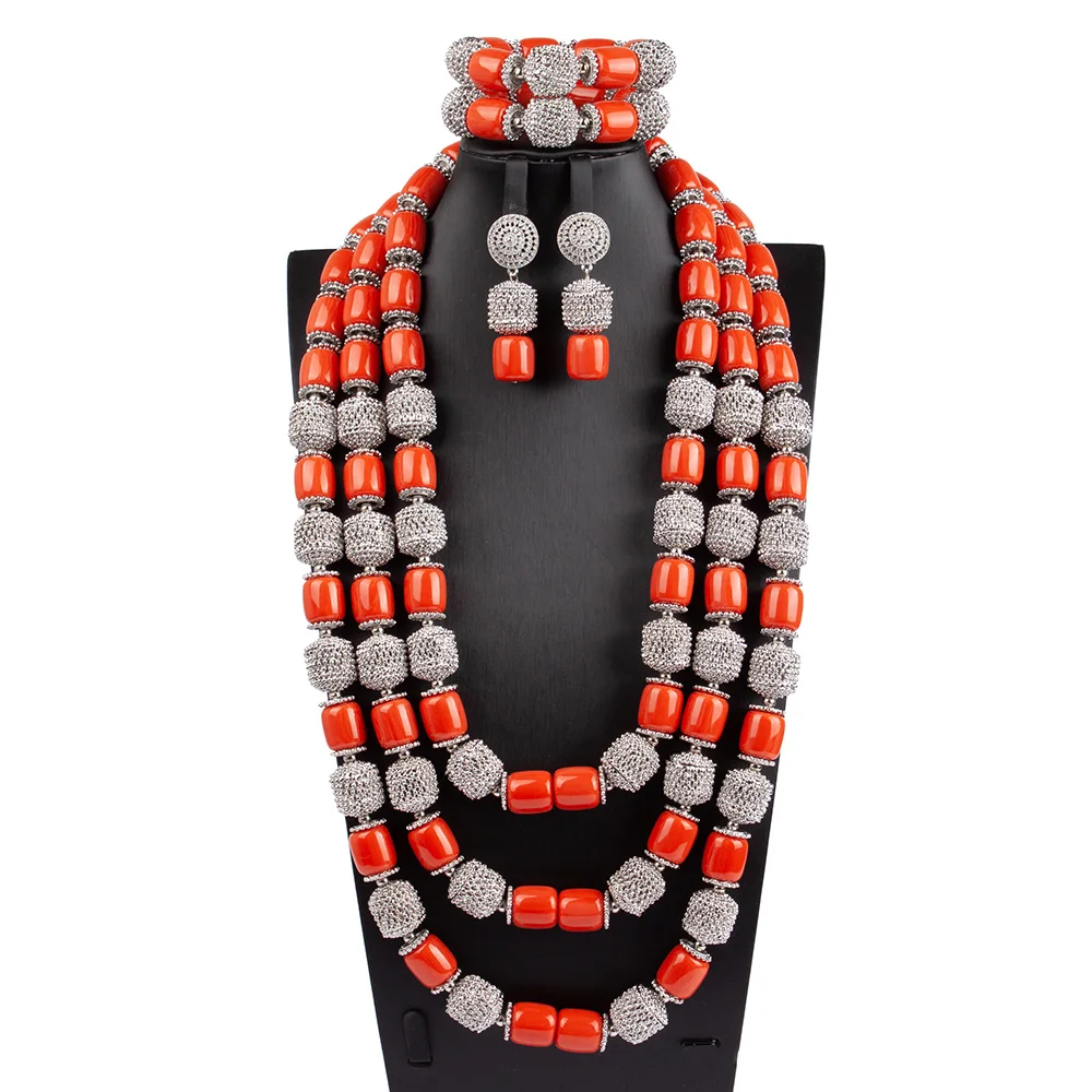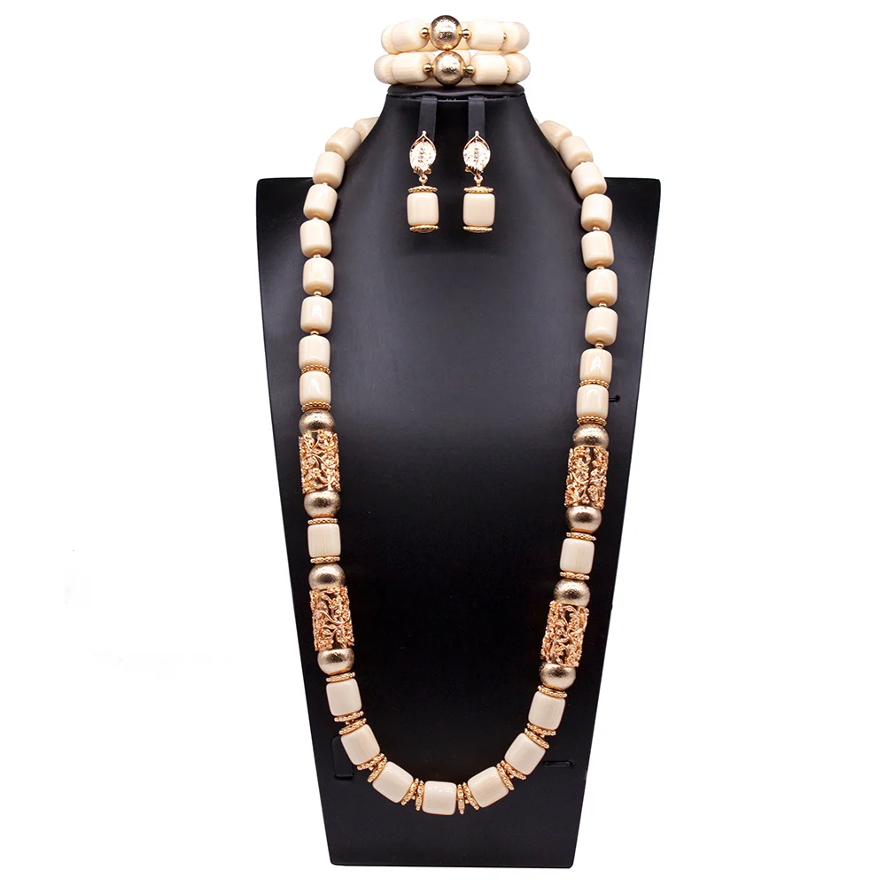 Long Fashion Wedding Beads Necklace White Artificial Coral Bridal Jewelry Sets African Beads Jewelry Set ABK261
