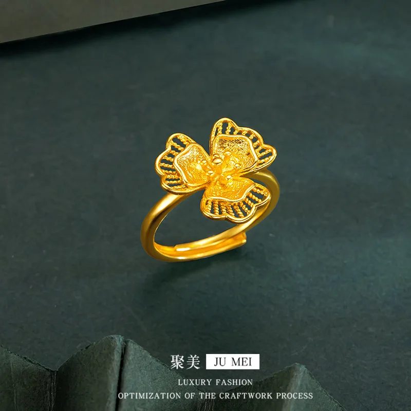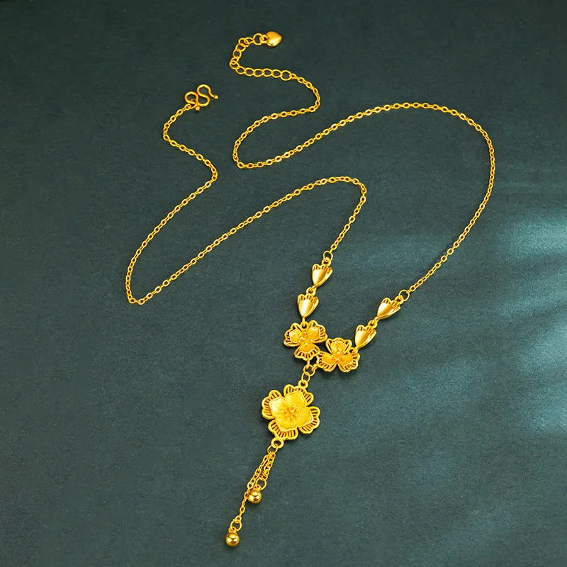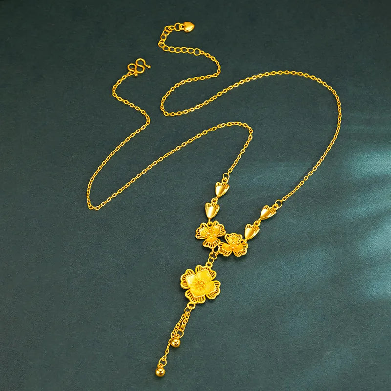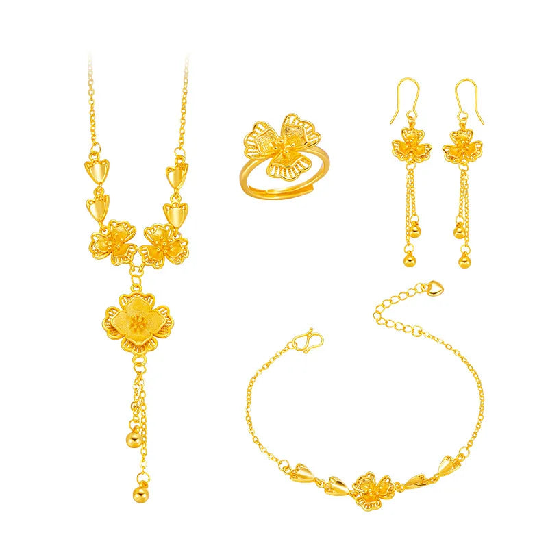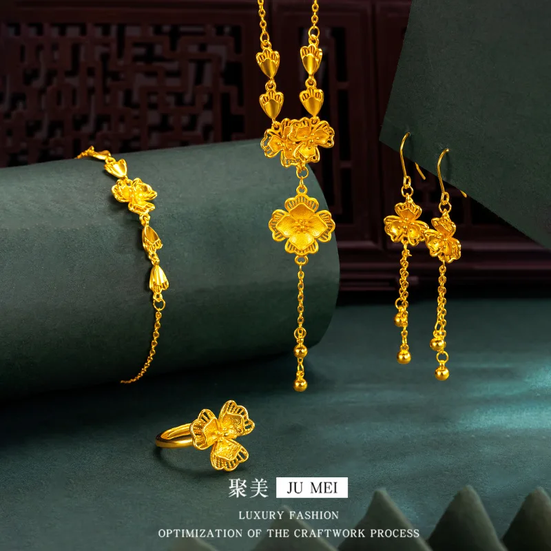 Luxury 24K 9999 Pure Gold real gold Gold Store Same Petal Tassel Lilac Set Chain Bracelet Women's Engagement Ring Bracelet