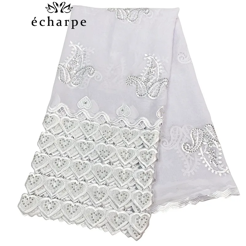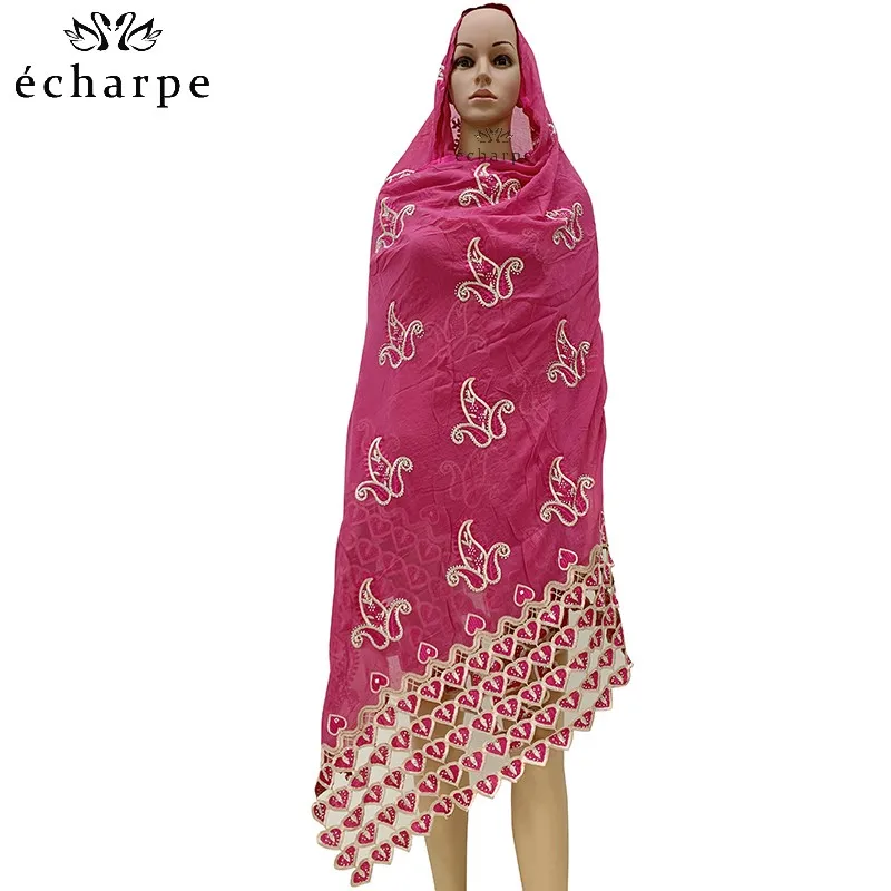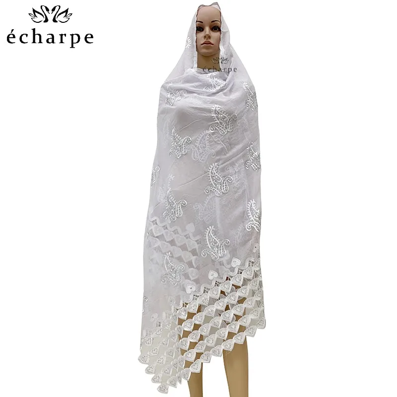 Luxury Scarf High Quality 100% Cotton Dubai African Women Islamic Scarf LOVE pattern Embroidery Chemical Lace Scarf 2 color
