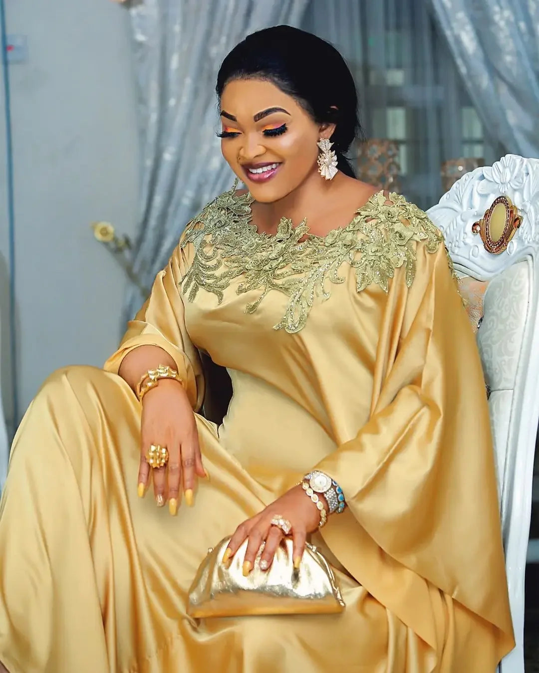 MCK Africa Gown Dress Silk Fabric Satin Gold Color Golden Flower Embroidery Diamond Abaya Party High Quality Maxi Long Dresses