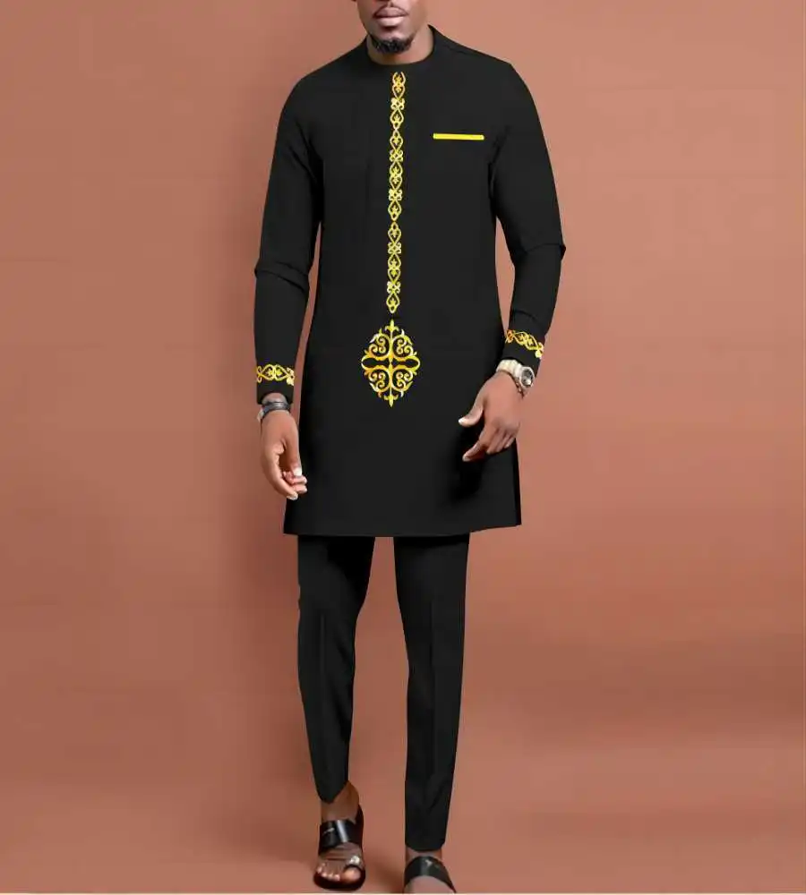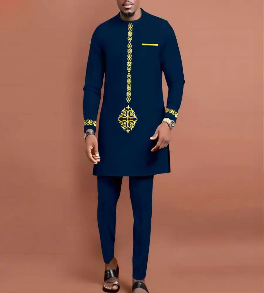 New Two-pieces Men's Dashiki Long Sleeve Top Pant Sets African Traditional Clothes Men's Luxury Kaftan Outfits Elegant Men Suits