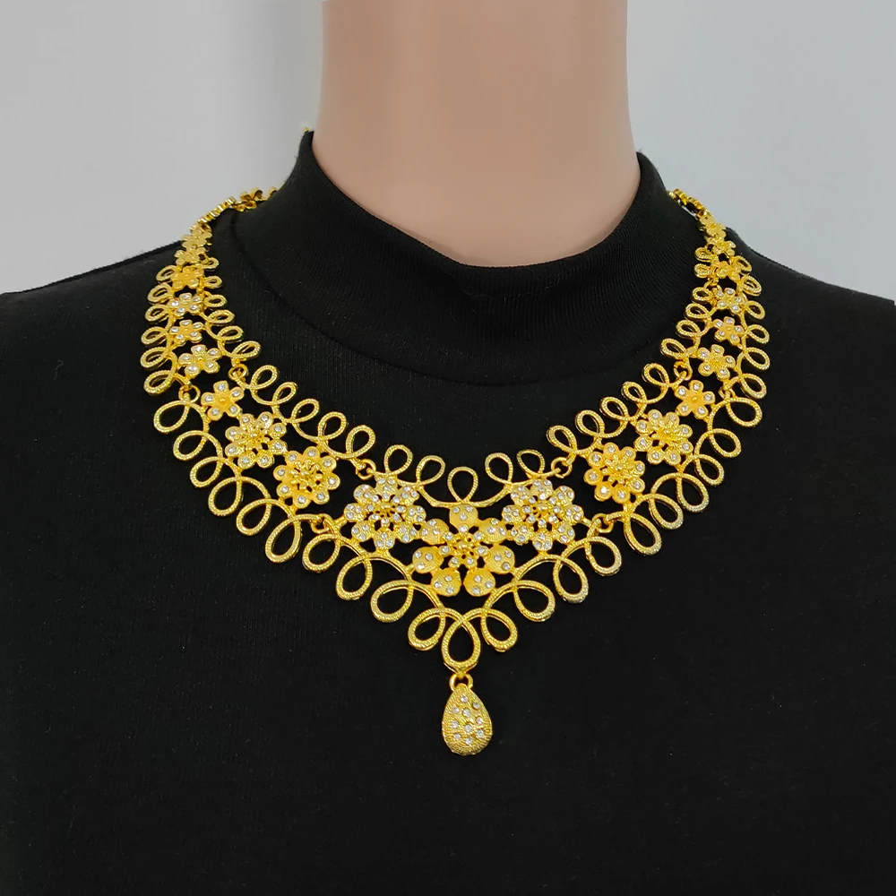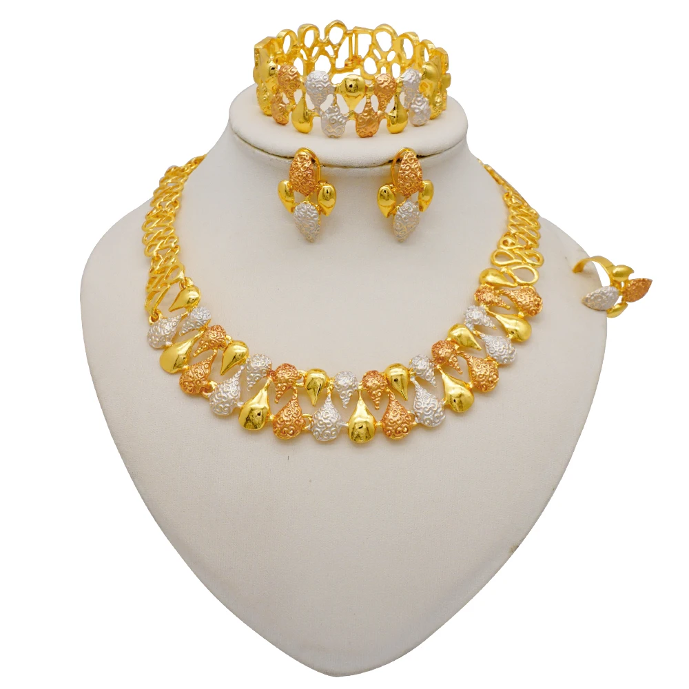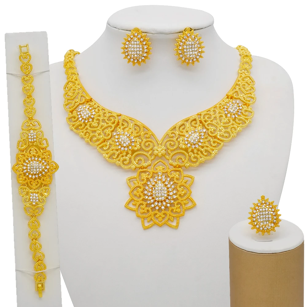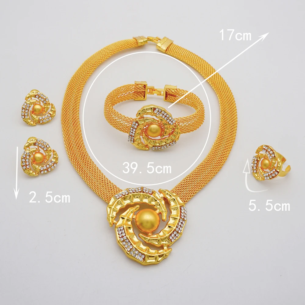 Nigeria Dubai Gold Color Fine Flowers Jewelry Sets African Wedding Gifts Party For Women Bracelet Necklace Earrings Ring Set