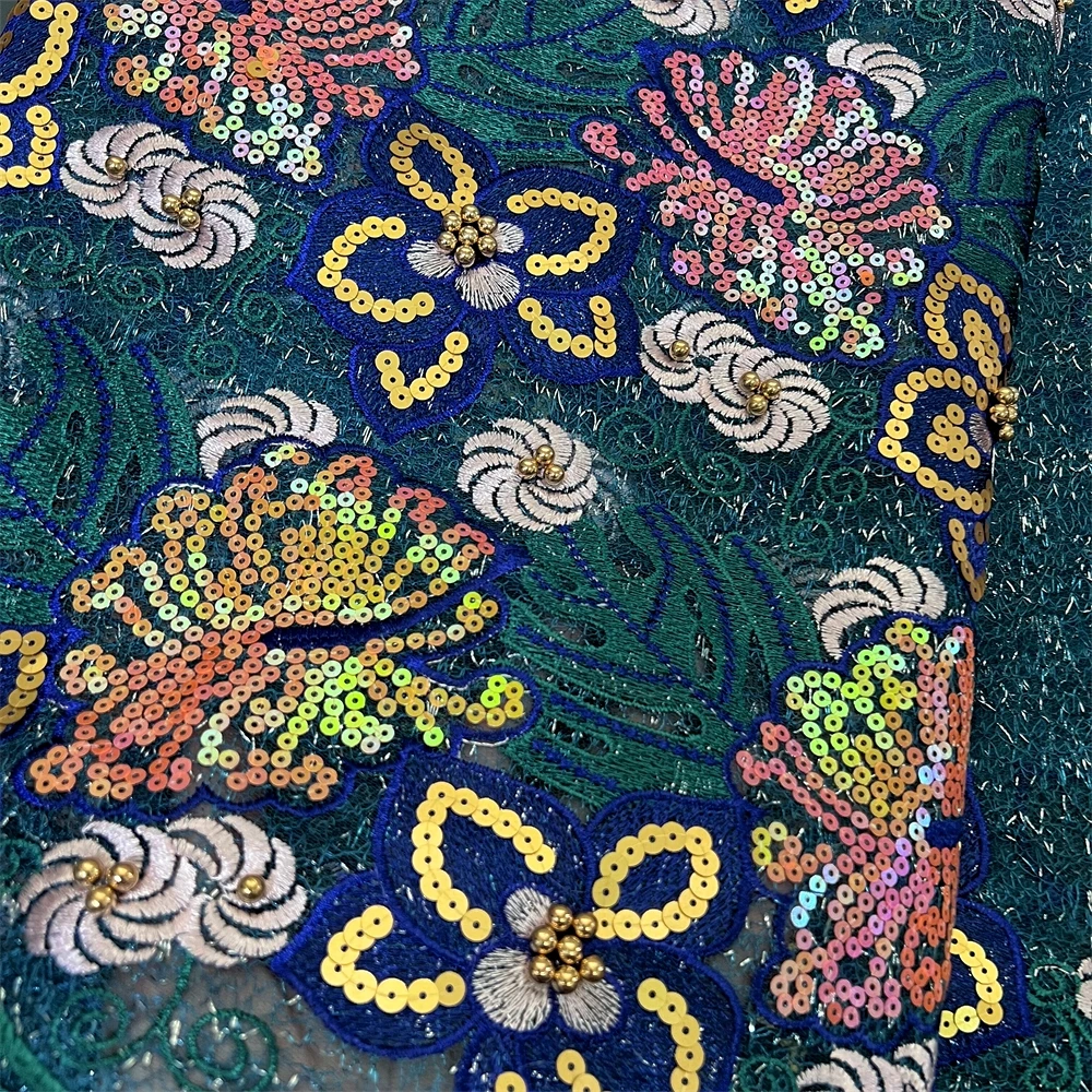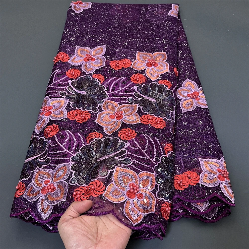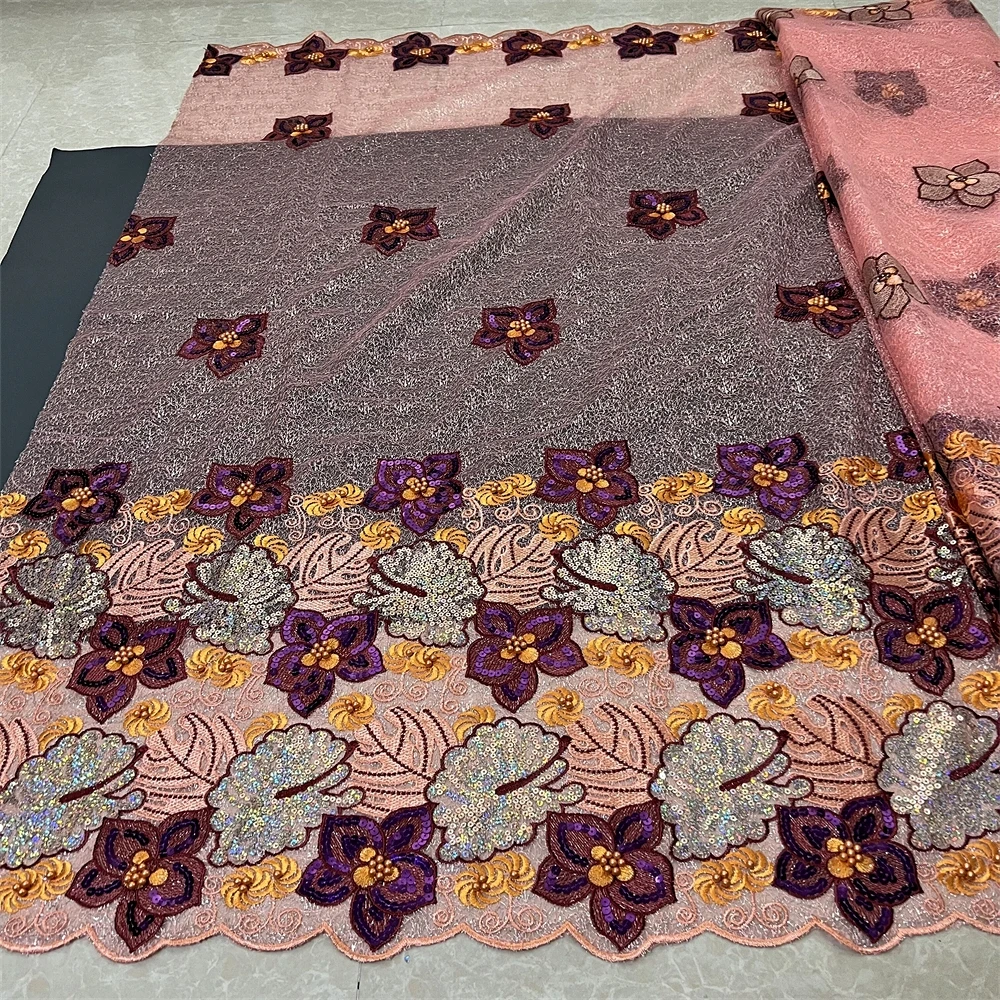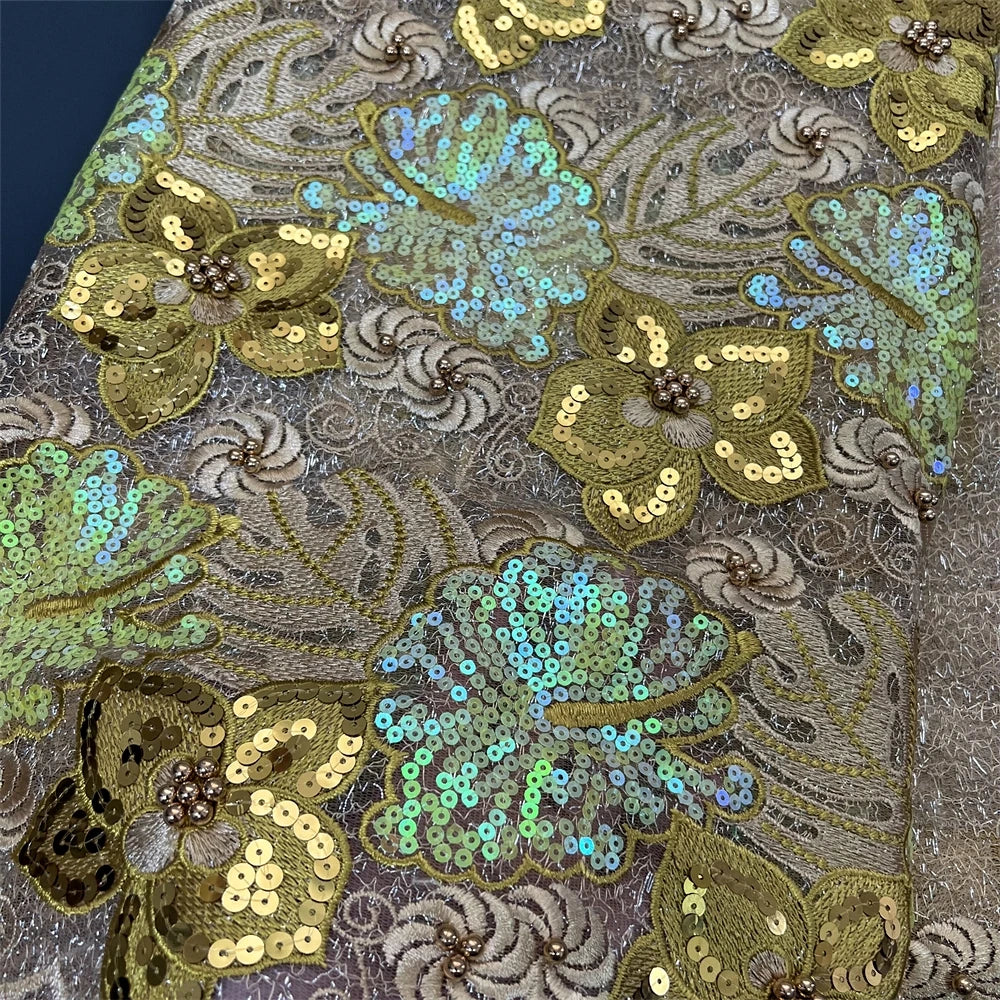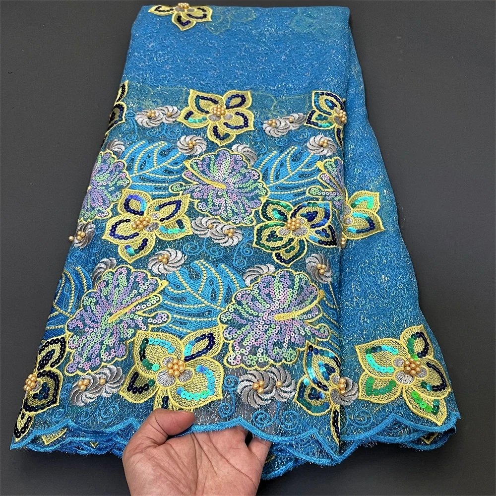 Nigerian Tulle Lace Fabric with Sequins Embroidery, High Quality, African Sewing, Guipure Net Cloth, Prom Dresses, 5Yards