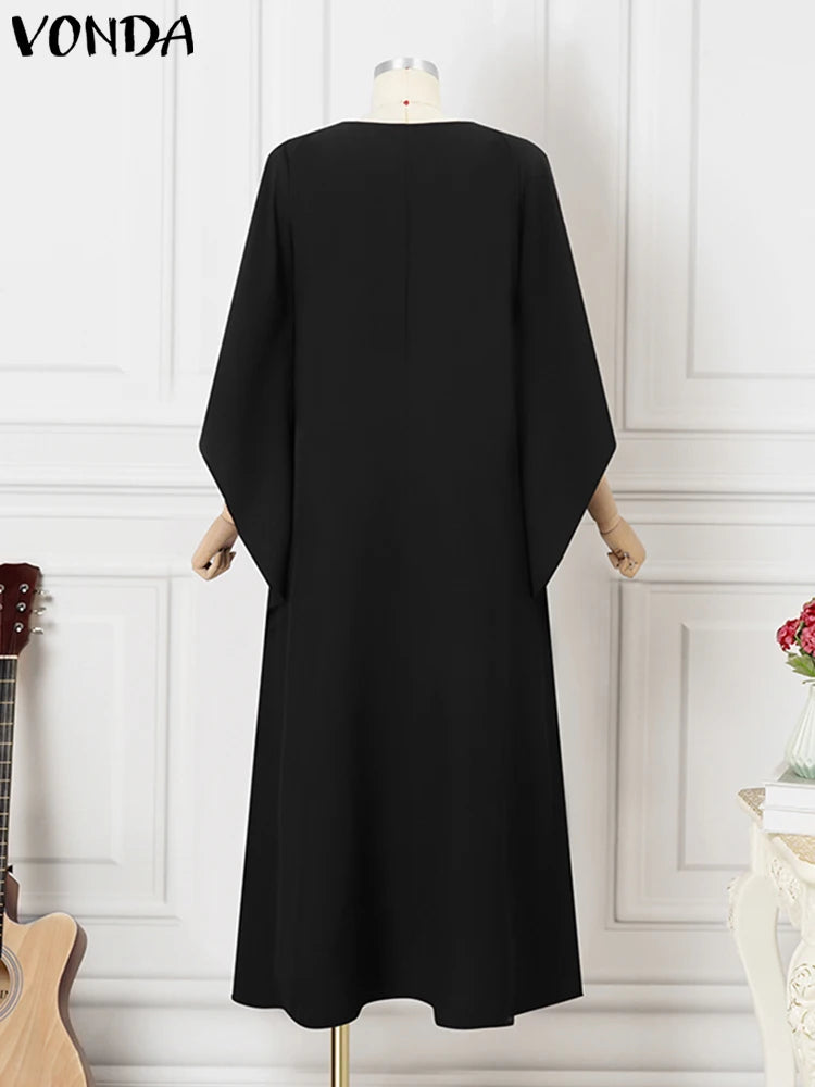Plus Size 5XL VONDA Bohemian Women Long Dress Summer Printed Ruffled Maxi Sundress Flare Sleeve Loose Casual Robe Party Vestidos