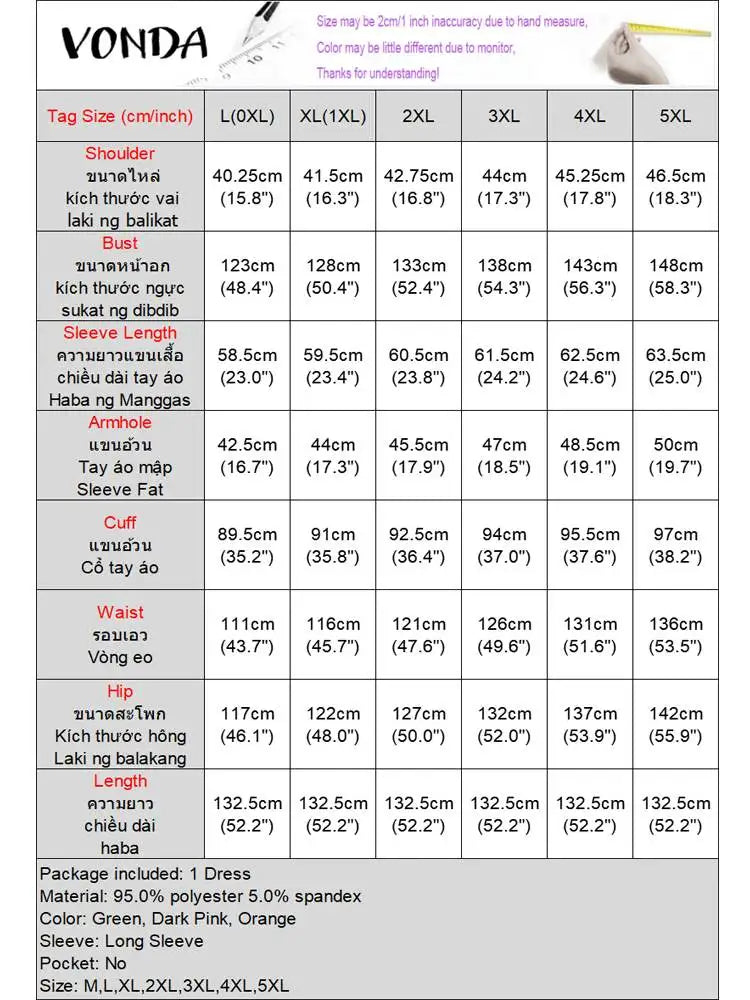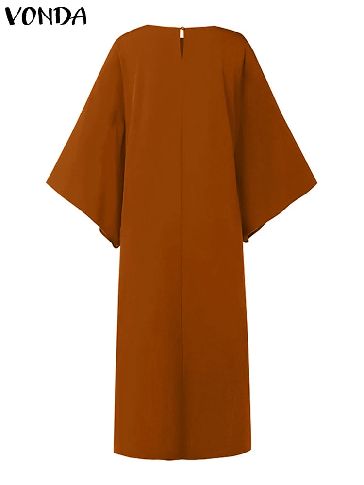 Plus Size VONDA Women Bohemian Long Maxi Dress Long Flare Sleeve Autumn Printed Vestidos Vintage Casual Loose Oversized Sundress