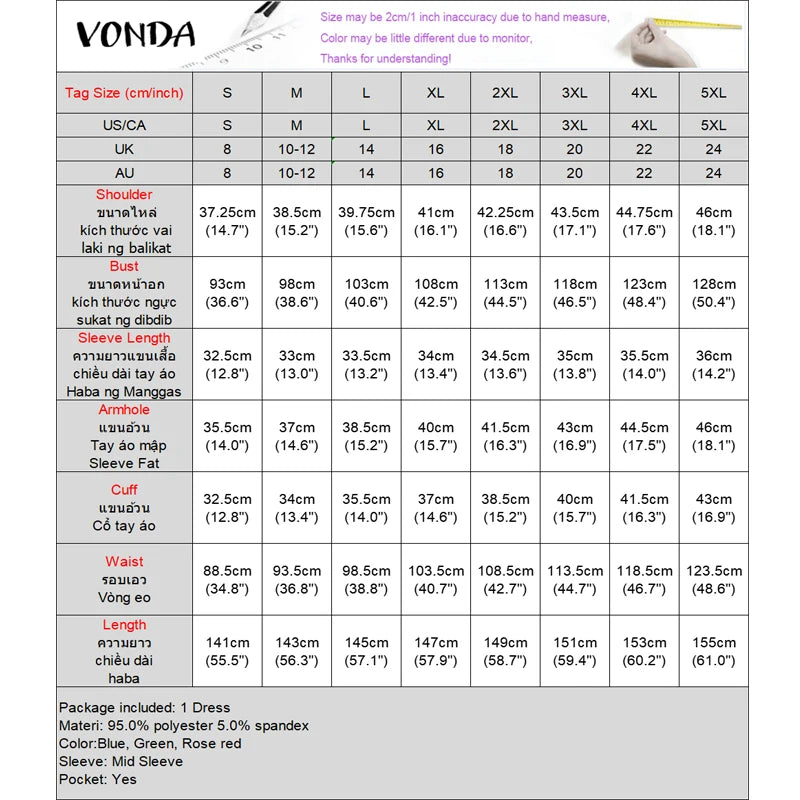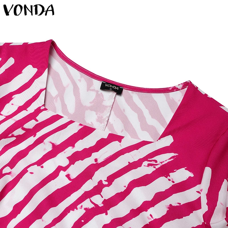 Plus Size Women Bohemian Maxi Dress 2025 Summer Printed Long Sundress VONDA Beach Party Vestidos Half Sleeve Casual Loose Robe