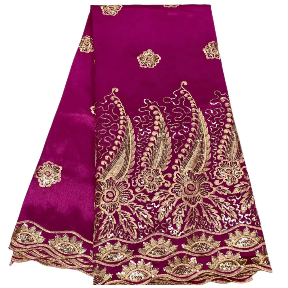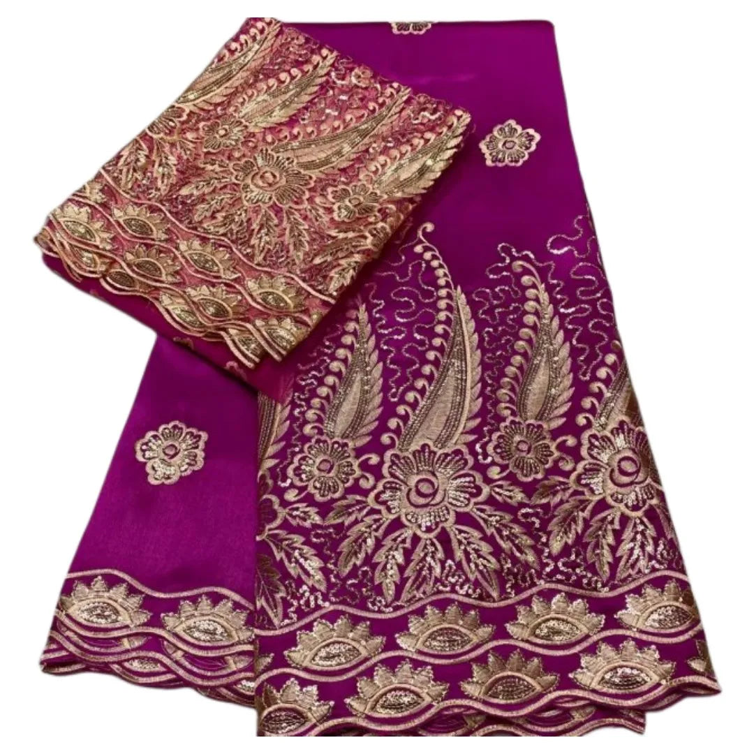 Pretty George Lace Fabric With Blouse 5+2 Yards Sets For Wedding Dress Nigerian Embroidery Guipure George Lace Fabric E23-24