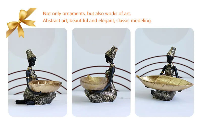 SAAKAR Resin Exotic Black Woman Storage Figurines Africa Figure Home Desktop Decor Keys Candy Container Interior Craft Objects