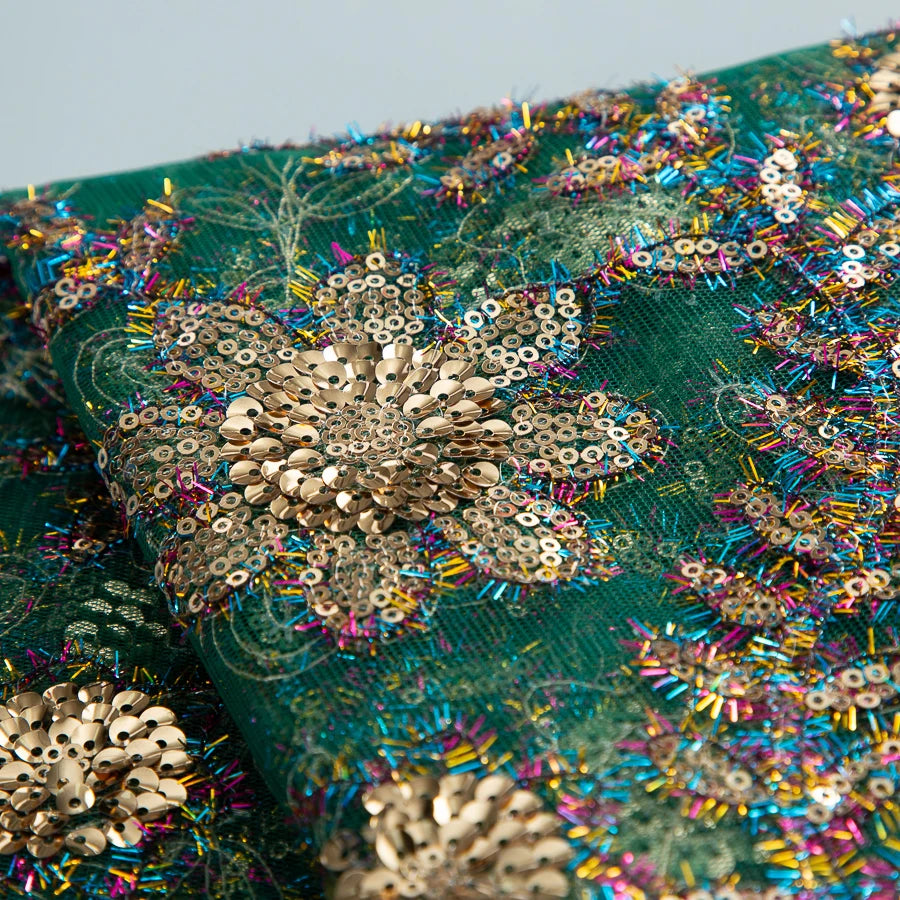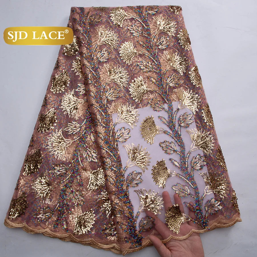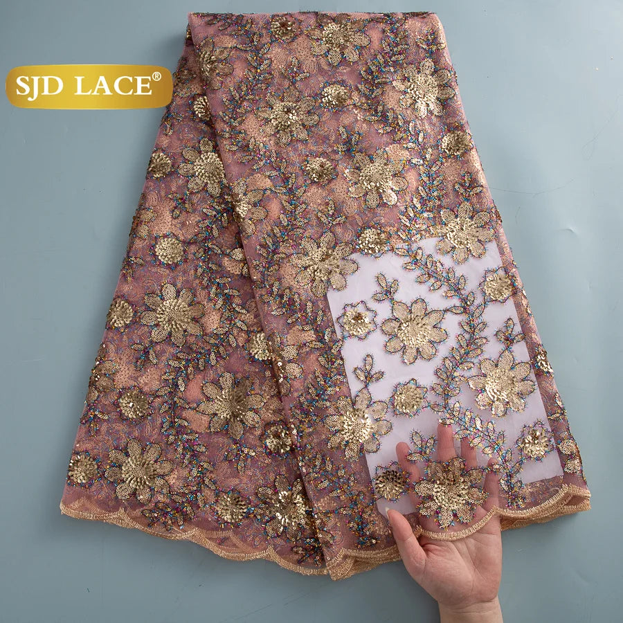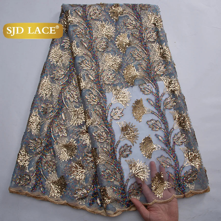 SJD LACE African Green Sequins Mesh Woman Lace Fabric High Quality 2025 Nigerian French Net Lace for Sewing Wedding Dresses 3735