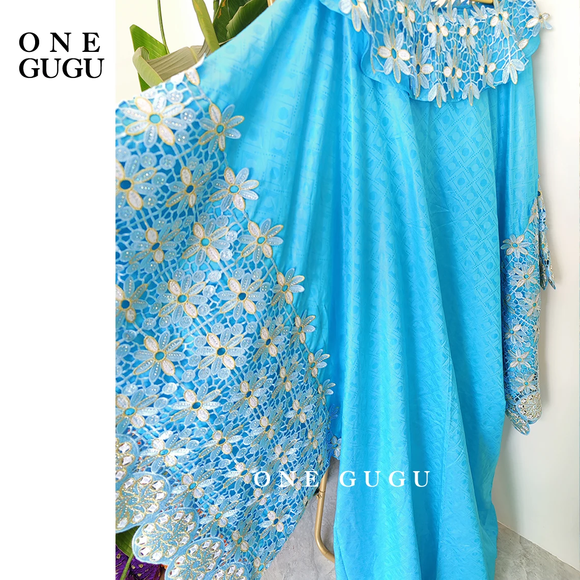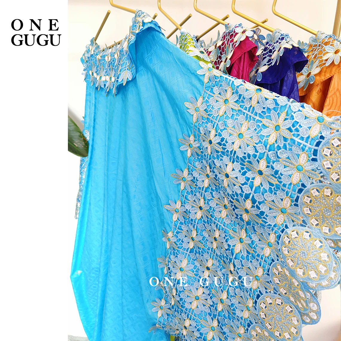 Sky Blue African Bazin Rich Dress Original Nigerian Basin BouBou Dashiki For Ankara Party Wedding Bride Robe Guipure Sewn Dress