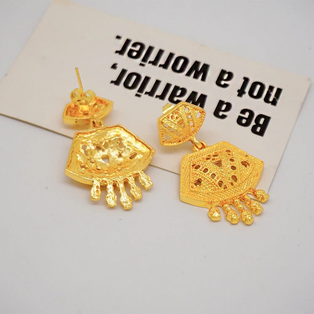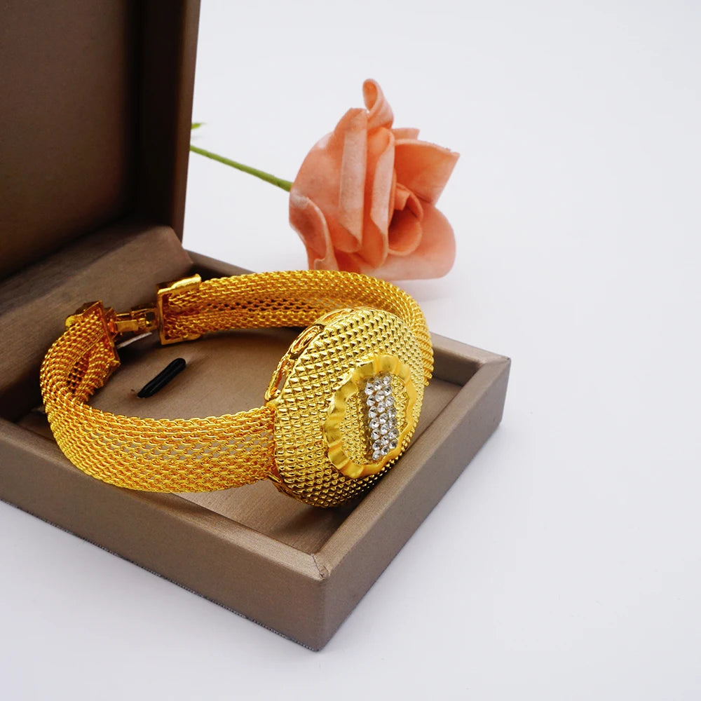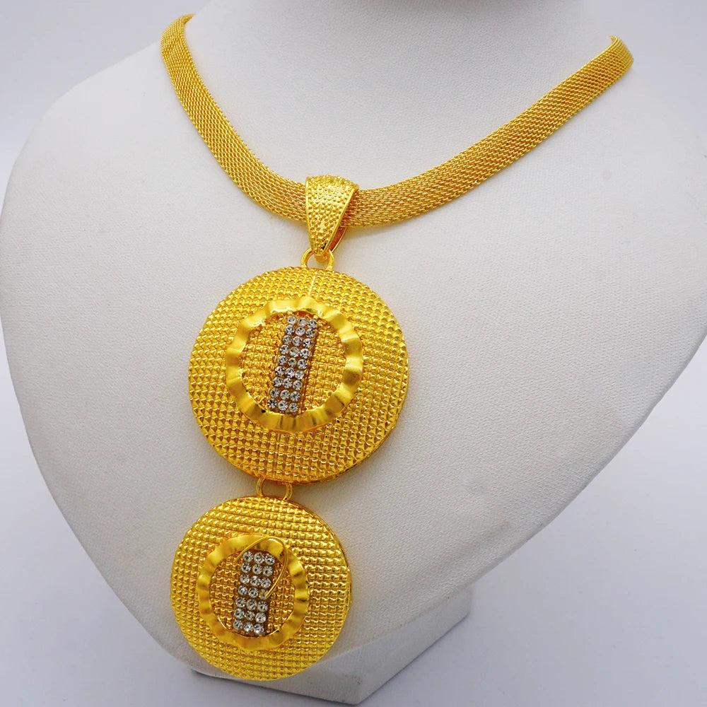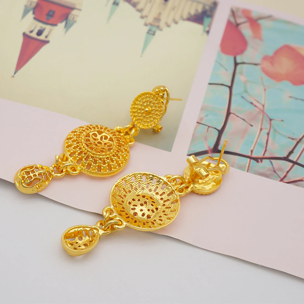 Trendy Nigerian Dubai Gold Color Jewelry Set For Women Tassel Long Chain Bridal Long Necklace Bracelet Earring Ring Wedding Sets