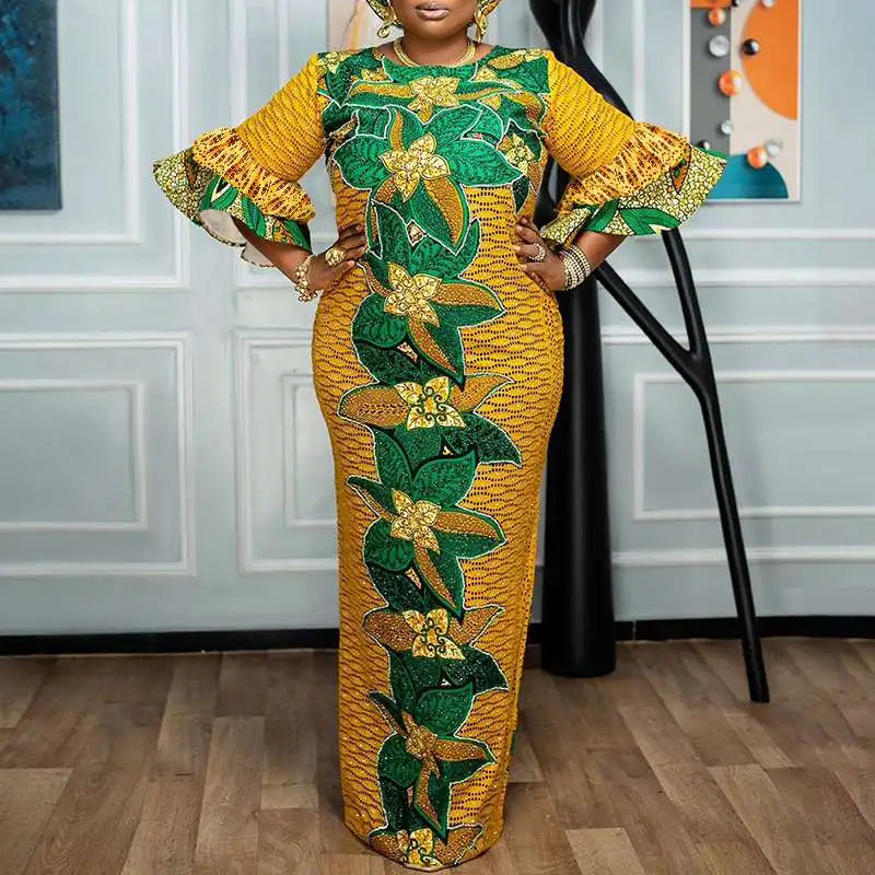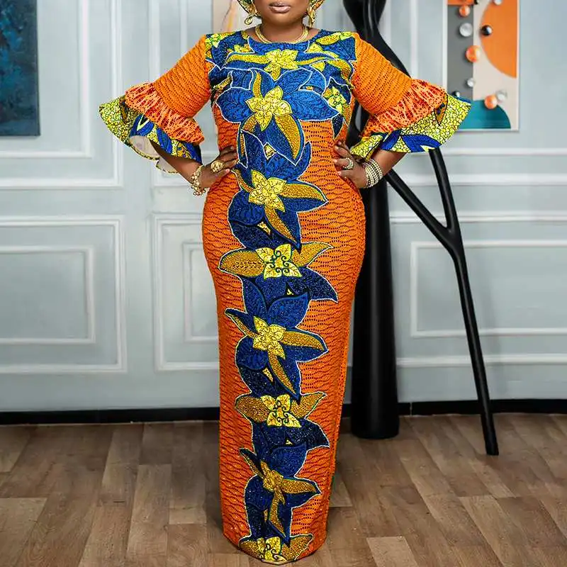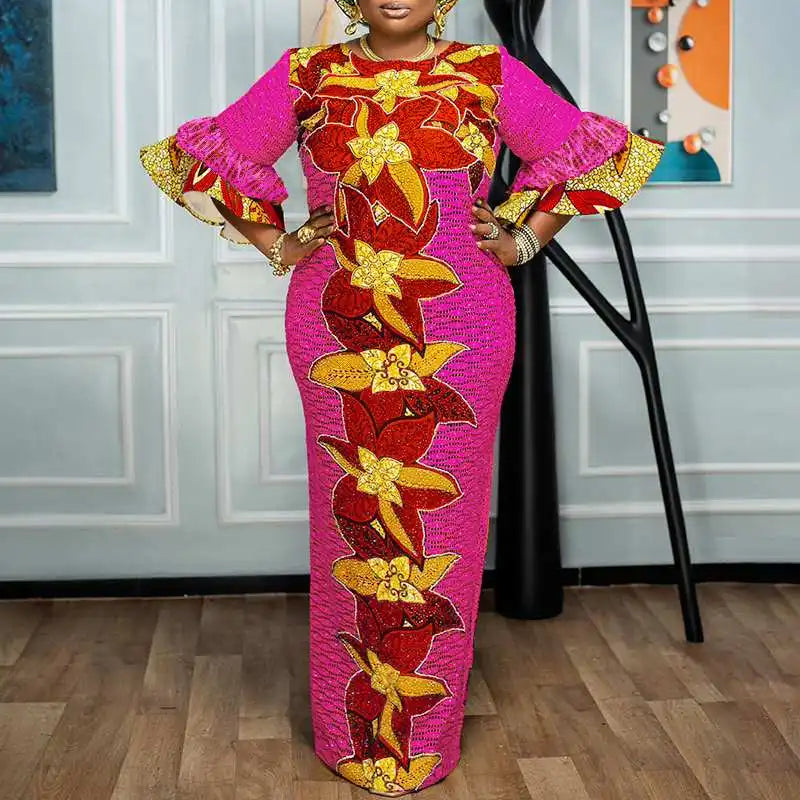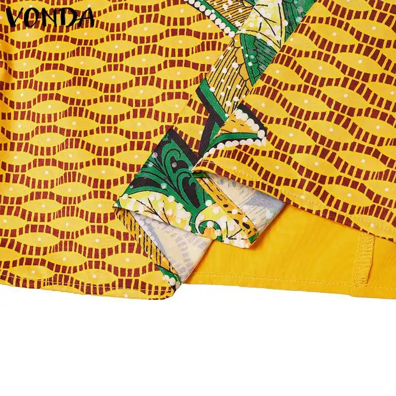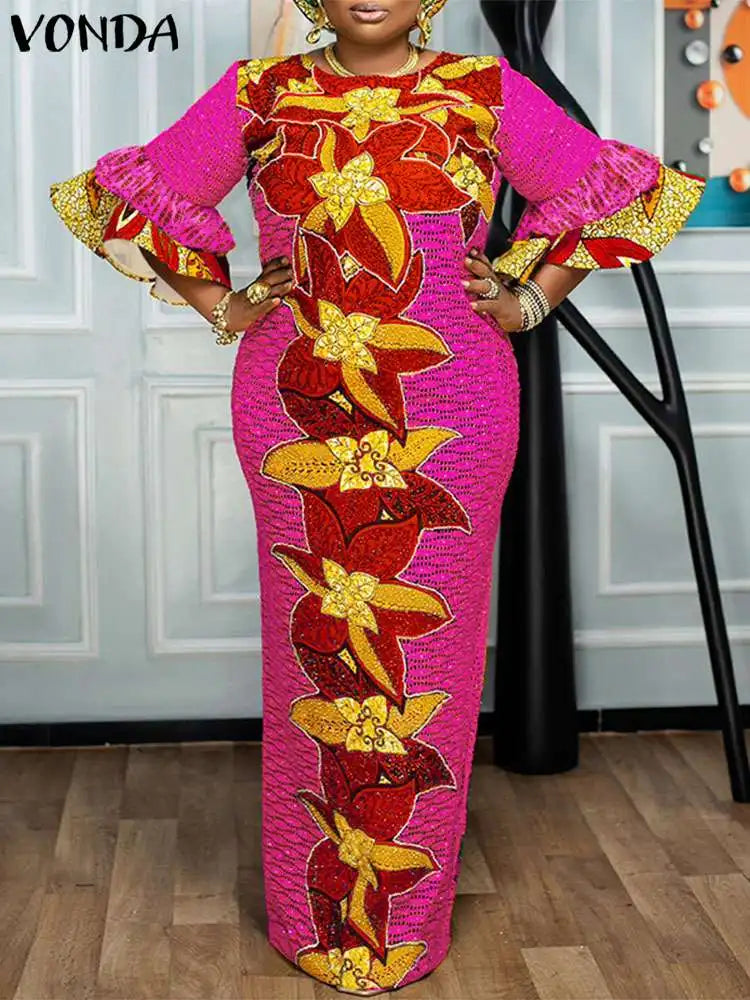 VONDA 2024 Fashion Women Elegant Maxi Dress Vintage Printed 3/4 Flare Sleeve Sundress Party Long Dress Casual Vestido Loose Robe
