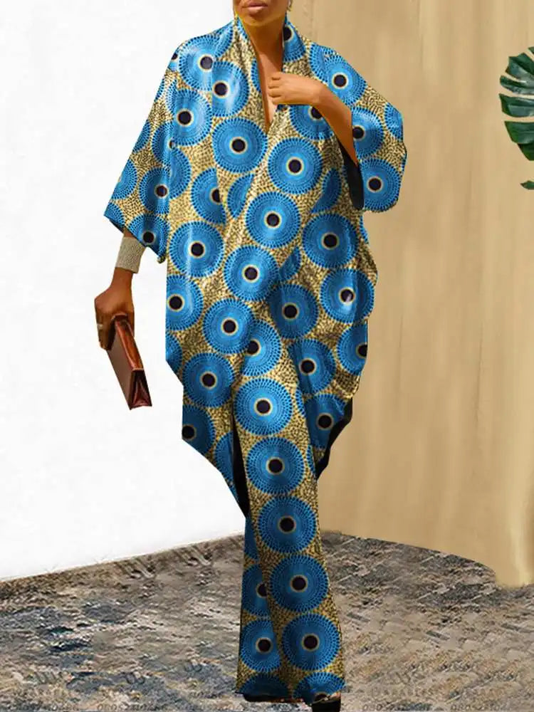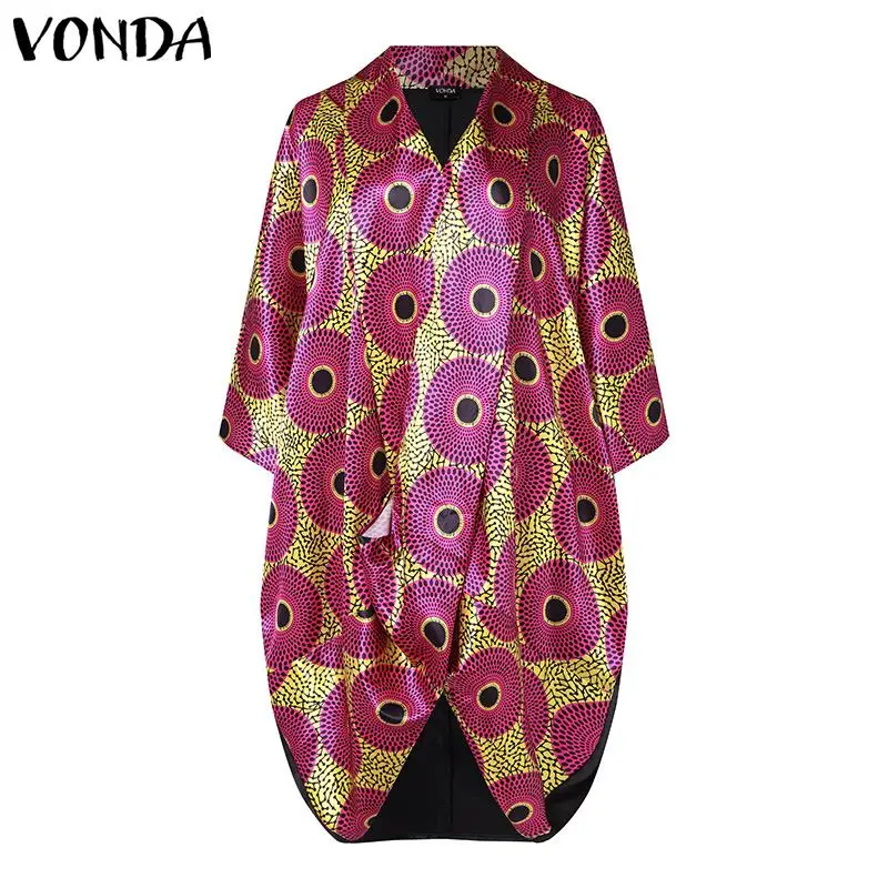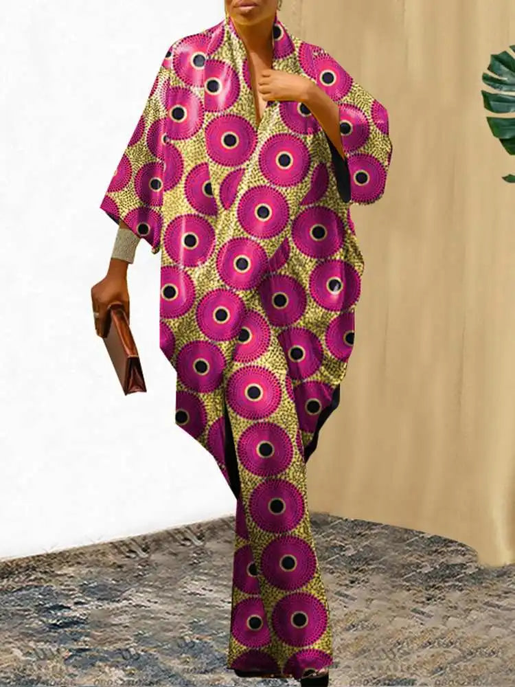 VONDA Plus Size Women Elegant Wide Leg Pants Pants Sets 2024 Vintage 3/4 Sleeve Elastic Waist Tops+Trousers Casual Pleated Suits