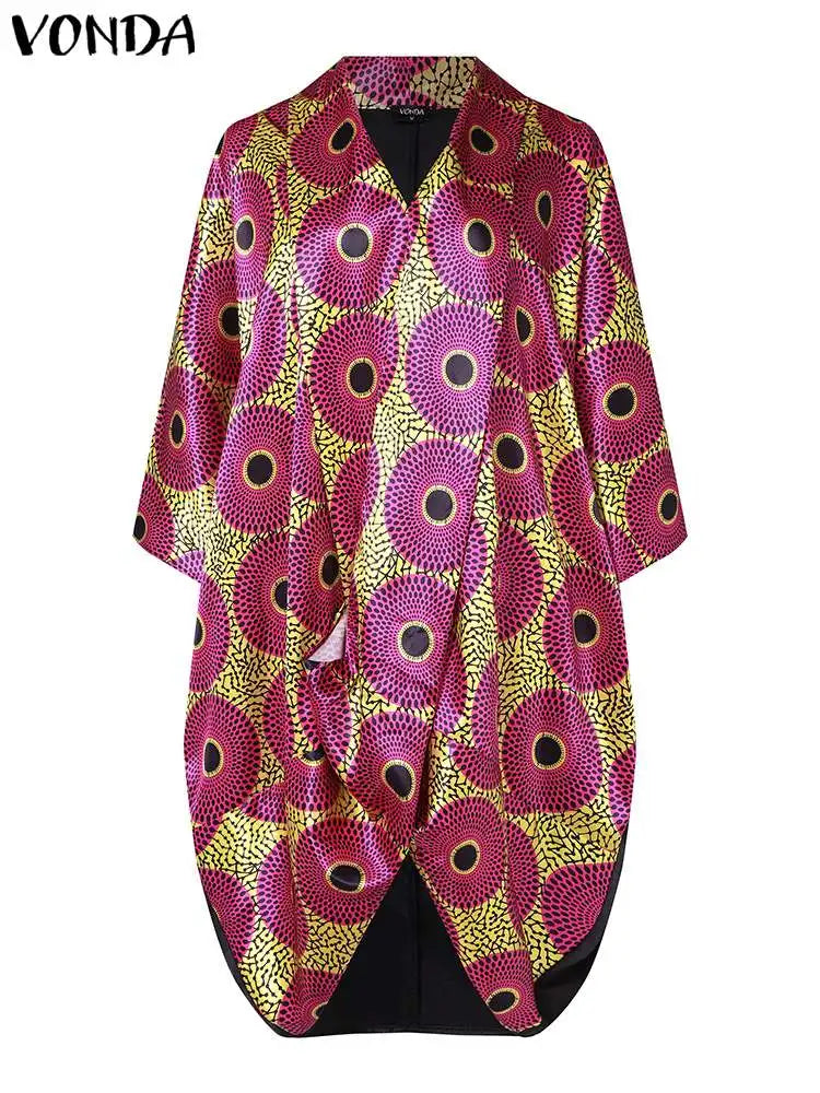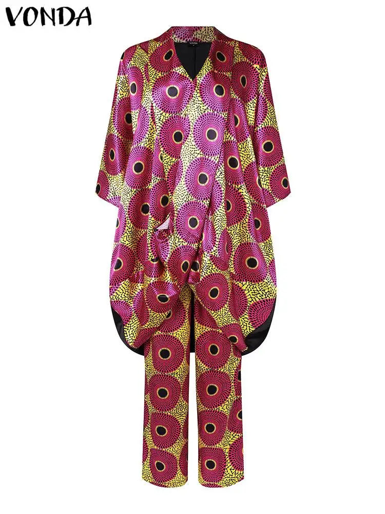 VONDA Plus Size Women Elegant Wide Leg Pants Pants Sets 2024 Vintage 3/4 Sleeve Elastic Waist Tops+Trousers Casual Pleated Suits